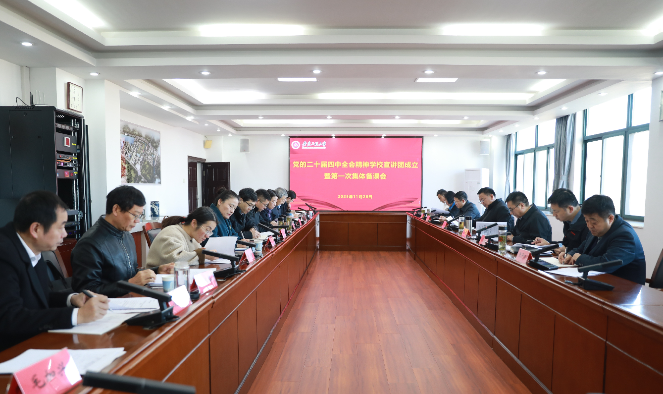 会议传达了学习贯彻党的二十届四中全会精神中央宣讲团动员会和省委宣讲团动员会精神,介绍了党的二十届四中全会精神宣讲内容,宣读了学校宣讲团成员名单和宣讲工作安排。