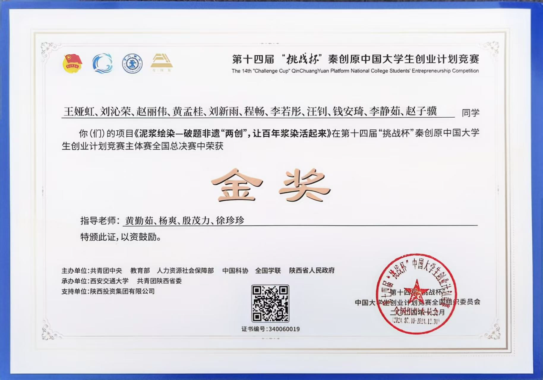 (“泥浆绘染——破题非遗两创,让百年浆染活起来”获第十四届“挑战杯”国赛金奖)