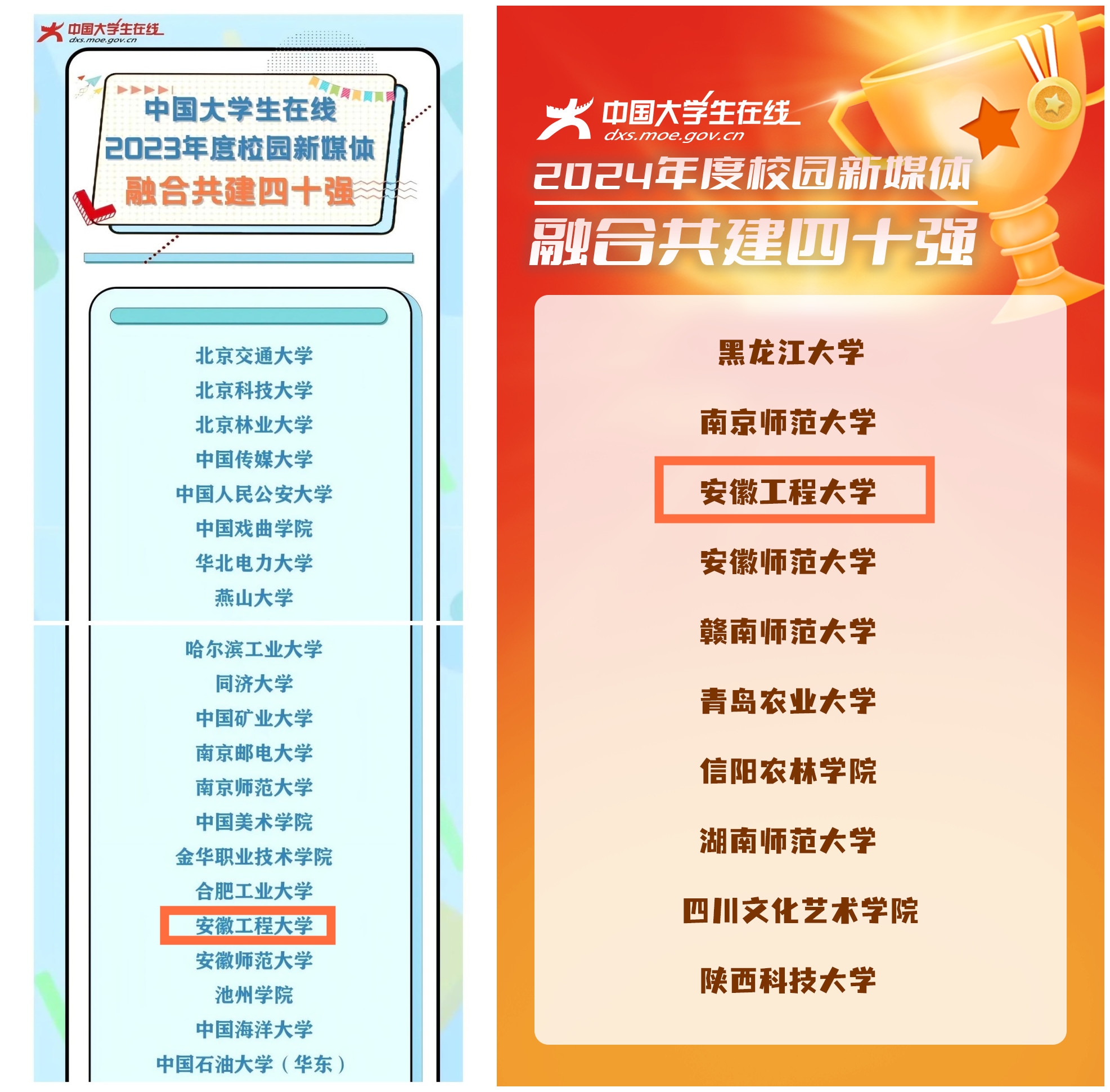 (学校新媒体连续荣获教育部中国大学生在线校园新媒体融合共建四十强)
