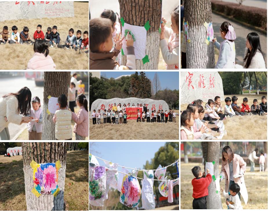 志愿者们还将传统拓印技艺带进幼儿园,耐心地为孩子们讲解树皮拓印的步骤,从工具使用到操作要点,逐一示范。孩子们走进林间,亲手触摸树木的纹理,用拓印的方式记录自然的肌理。一幅幅充满童趣的作品跃然纸上,孩子们在动手实践中感受传统技艺的魅力,也在心中播下了热爱自然、热爱艺术的种子。