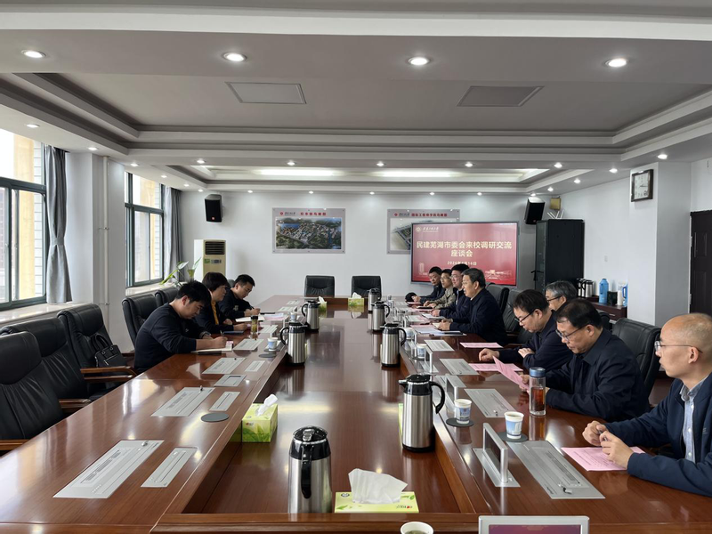 4月16日,民建芜湖市委会主委王芳带队来校调研交流。校党委宣传部(统战部)常务副部长王勇智热情接待了王芳一行,并主持召开座谈会。民建芜湖市委会组织部负责同志,民建校支部成员参加座谈。